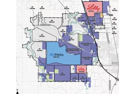 Critics cite concerns about wastewater treatment and adequate availability of water for residents in response to planned industrial district where Meta and Eli Lilly are advancing multibillion-dollar projects.